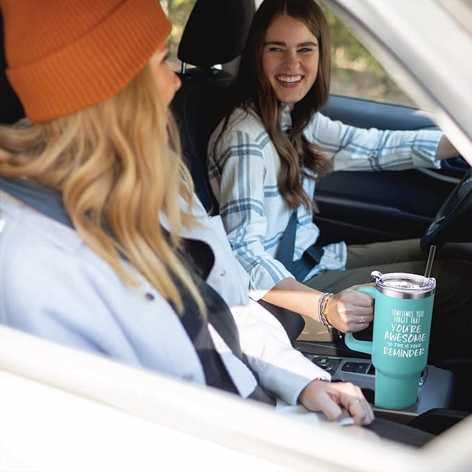 NOWWISH Gifts for Women, Birthday Inspirational Thank You GIfts for Women Mom Wife with this Funny Tumbler, 40 oz Tumbler with Handle and Straw - Green