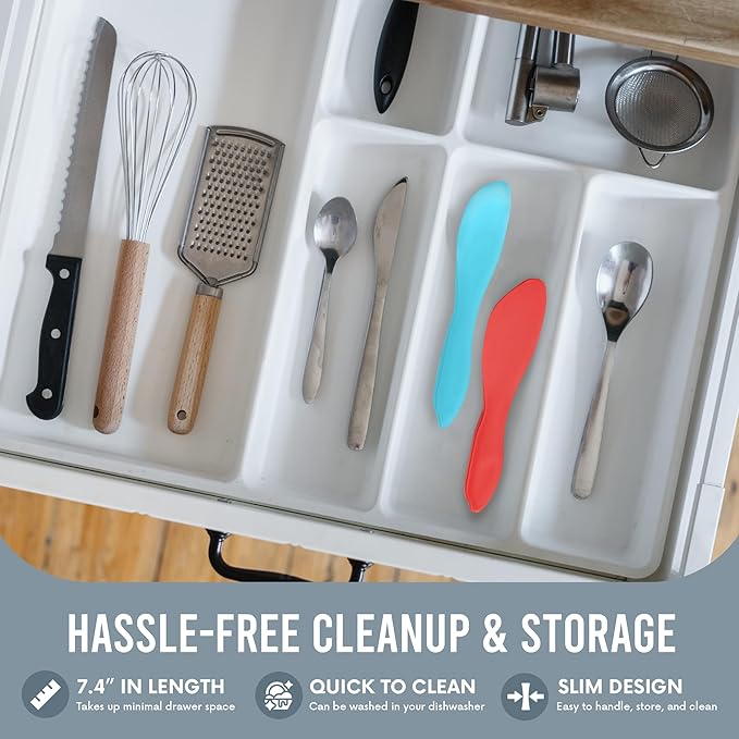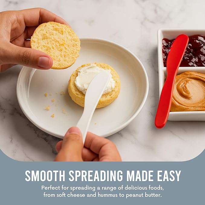 - SPREADING MADE SIMPLE: From soft cheese and tasty hummus to peanut butter, these handy sandwich knives help spread a variety of delicious foods! Available in several vibrant colors, they’re sure to match any décor and are great for barbecues and parties.