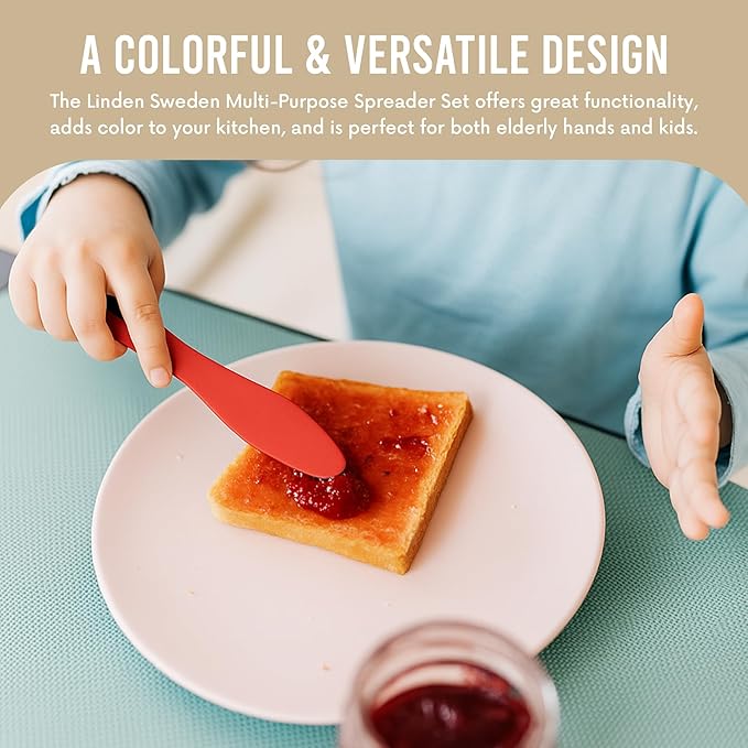 LINDEN SWEDEN 3-Pack Multipurpose Spreaders | Everyday Use Knives for Spreading | Small Spreader Knives | Dishwasher Safe Peanut Butter Jar Knife | Mess Free Butter Spreader | 3 Pack | Multicolored