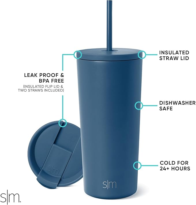 Simple Modern Insulated Tumbler with Lid and Straw | Iced Coffee Cup Reusable Stainless Steel Water Bottle Travel Mug | Gifts for Women Men Her Him | Classic Collection | 20oz | Slumberland