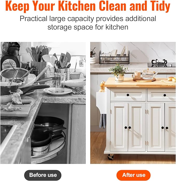 - Quality & Durability: Our kitchen island’s top plate uses high-quality solid rubber wood, and it has a frame made of durable MDF, which makes it long-lasting for years to come. The top features are anti-dirt and waterproof.