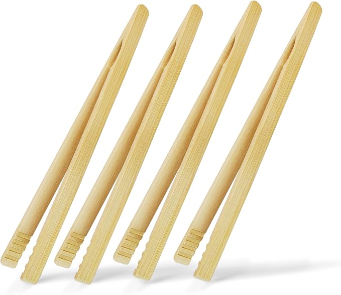 4 Pieces Natural Bamboo Toast Tongs, bamboo,10.2 Inches Long Tongs with Anti-slip Design,for cooking, toaster.