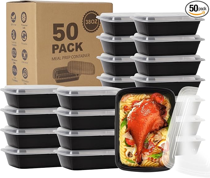 50 Pack- Meal Prep Containers 38oz, Plastic Food Prep Containers Reusable, Leakproof To Go Food Containers with Lids, BPA-Free, Microwave/Dishwasher/Freezer Safe