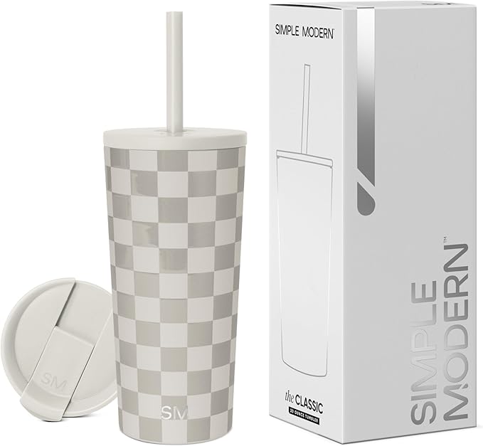 Simple Modern Insulated Tumbler with Lid and Straw | Iced Coffee Cup Reusable Stainless Steel Water Bottle Travel Mug | Gifts for Women Men Her Him | Classic Collection | 20oz | Checkmate