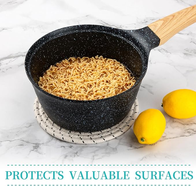 - MATERIAL: Woven from natural cotton, it has stronger heat resistance compared to silicone mats, it won't melt, and the natural cotton doesn't have any odor