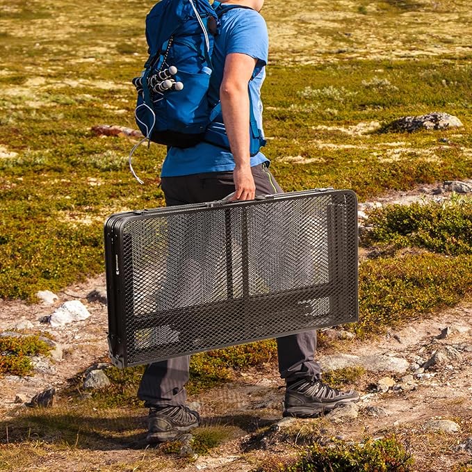 - [Lightweight and Portable] Folded, the package measures 27.2×13.6×2.56 inches, and the weight only 7.2 lbs,easily fitting into your car or RV. It can be used as a camping table, bbq table, patio table, picnic table, side table, outdoor activities, campfire, card table, etc
