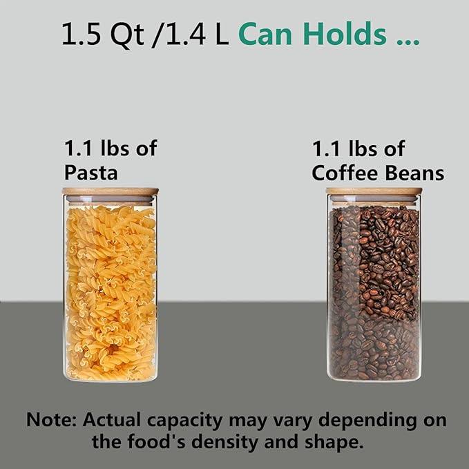 - [Airtight Storage Jar] Each glass jar is sealed around the wooden lid with a comprehensive silicone sealing ring, creating a moisture-proof environment that keeps your dry food clean and fresh.