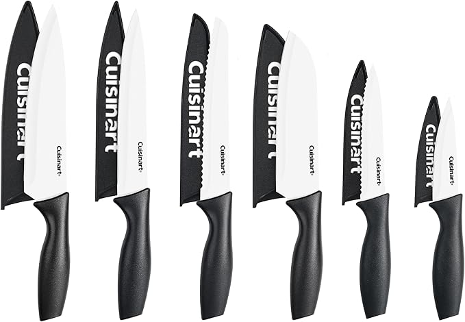 Cuisinart Knife Set, 12pc Ceramic Coated Knife Set with 6 Blades & 6 Blade Guards, Lightweight, Stainless Steel, Durable & Dishwasher Safe (Black/White)