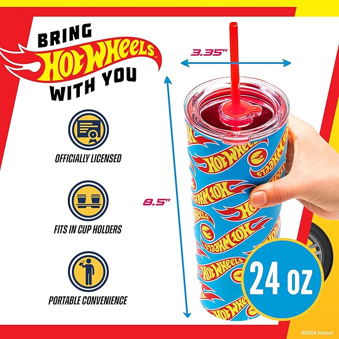 - On-the-Go Style: For Hot Wheels fans with a fast-paced lifestyle, this insulated cup with lid and straw is a stylish way to stay hydrated on the go, bringing the excitement of Hot Wheels wherever you race in life