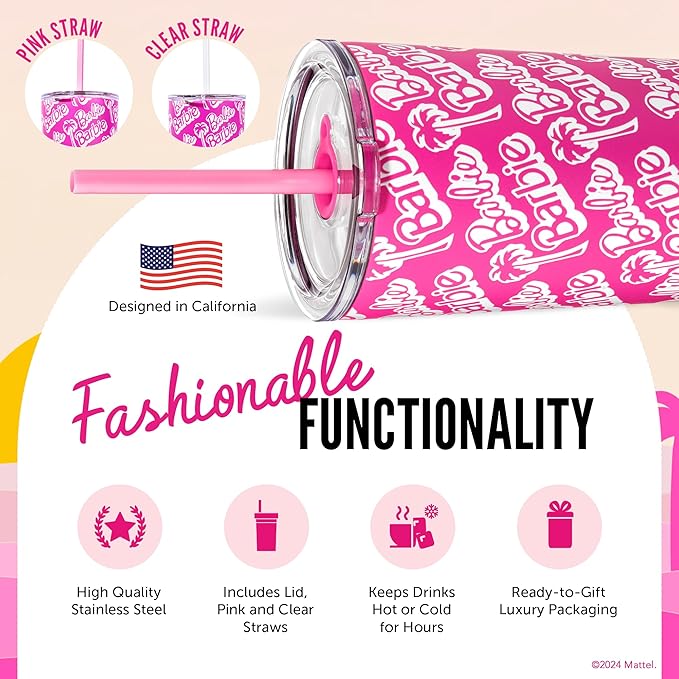 - Officially Licensed Merch: Bring Barbie with you on your daily routine with this officially licensed insulated cup featuring signature Barbie style