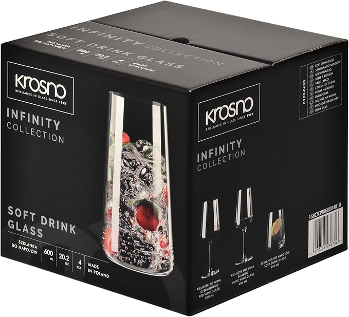- Elegant and Timeless Design: The Krosno Infinity Drinking Glasses feature a sleek and refined design that complements any table setting. The simple yet stylish shape is perfect for enjoying water, juice, cocktails, and more, adding a touch of sophistication to every sip.