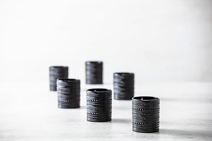 Fortessa Jupiter Beaded Hobnail Glass, 10 Ounce Double Old Fashioned (Set of 6), Obsidian Black