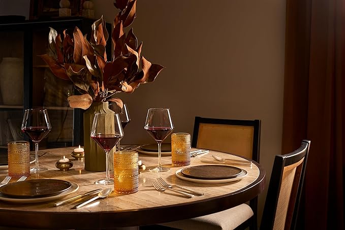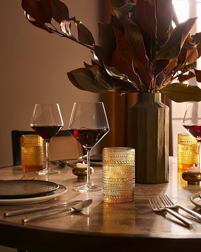 Fortessa Jupiter Beaded Hobnail Glass, 13 Ounce Iced Beverage (Set of 6), Amber