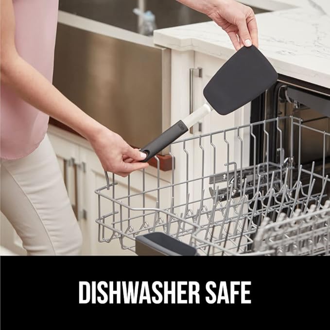 GORILLA GRIP Patented BPA-Free Non-Scratch Spatula, 2 Pack, Heat Resistant Flexible Silicone Head for Nonstick Cooking Pans, Soft Rubber Handle, Kitchen Spatulas for Flipping Eggs, Pancakes, Black