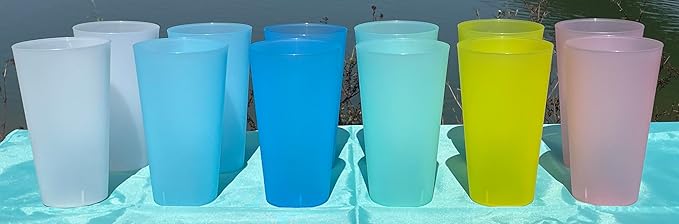 - DRINKING CUPS: 7.0-inches tall, 4.0-inch mouth diameter, 6 colors set of 12, 32-ounce maximum capacity.