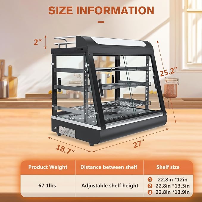 - Adjustable Temperature-Temperature adjustment and display are in degrees Fahrenheit, ranging from 70°F to 185°F for different foods. Keeps food fresh for a long time. The temperature knob has a temperature display for real-time temperature monitoring.