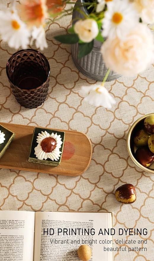 - Premium Fabric Blend:Crafted from 12% linen and 88% polyester,this tablecloth combines the natural texture of linen with the durability of polyester.The fabric is soft yet sturdy,offering a wrinkle-resistant and fade-resistant finish that keeps your dining area looking fresh and elegant
