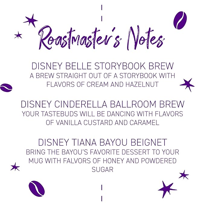 - A FAIRYTALE PARTNERSHIP: Each whimsical blend was created exclusively for Disney. Our Roastmaster teamed up with Disney’s world-class chefs to capture the essence of Disney—creating high-quality specialty coffees that you can sip & savor at home.