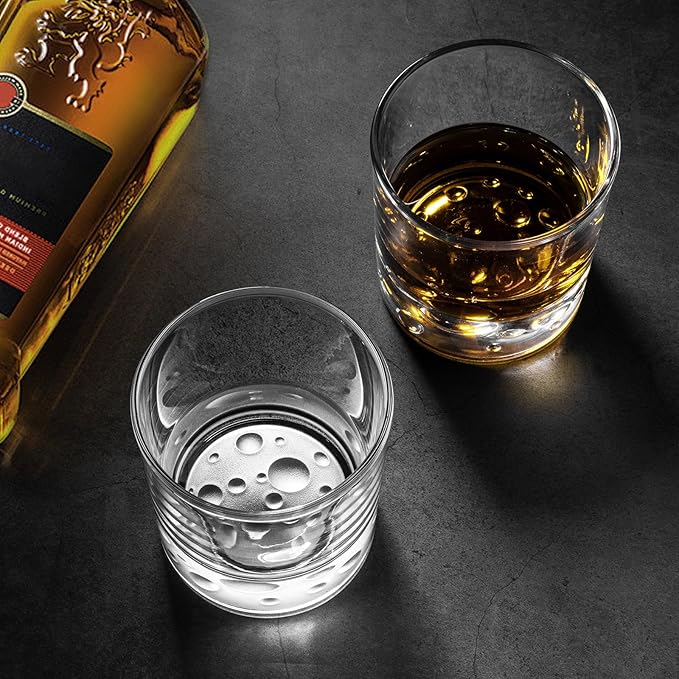 Creative Moonbottom Whiskey Glasses Set of 4, Old Fashioned and Cocktail Glasses (Frosted bottom set of 4), gift for amateur astronomer