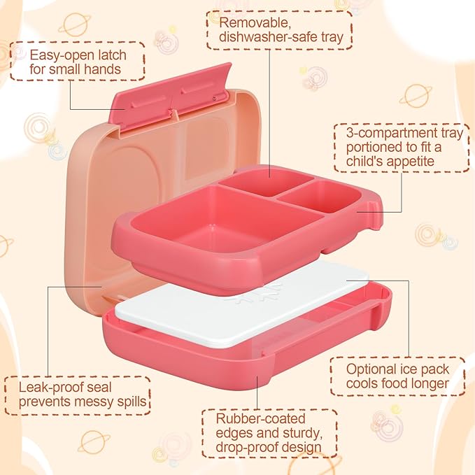 - ❄️🧊KEEPS LUNCHES COOL: No need to buy extra ice packs! Our lightweight and reusable bento lunch box for kids has a design with a removable ice pack to keep food cool longer.Simply pop the ice pack into the freezer the night before and add it underneath the lunch box tray when your kids are ready to get out the door.