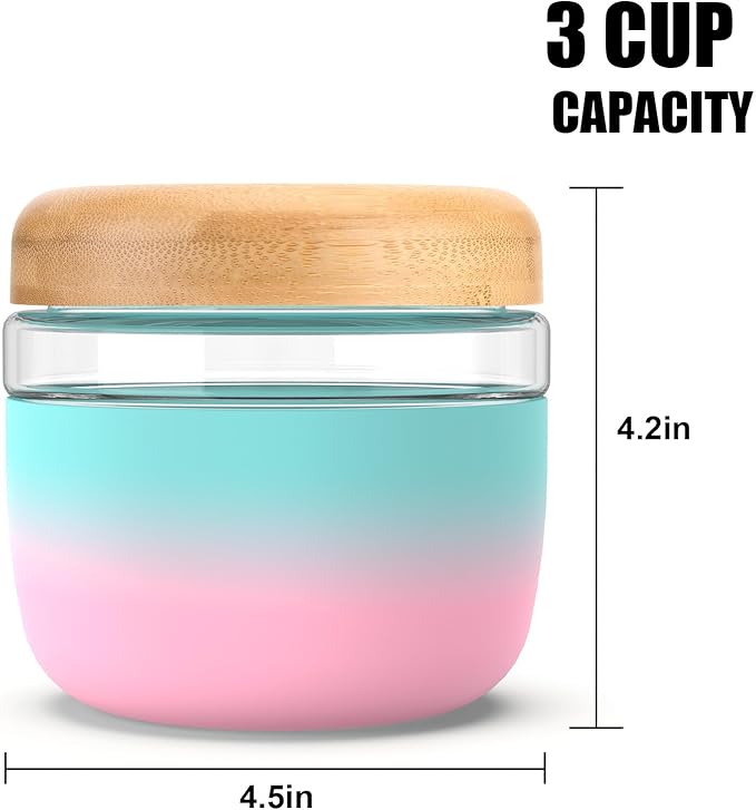 - Leak-Proof Design: Say goodbye to spills and leaks with our Overnight Oats Containers with Lids. The airtight seal tight glass bowl locks in freshness, making it perfect for meal prep and on-the-go snacking.