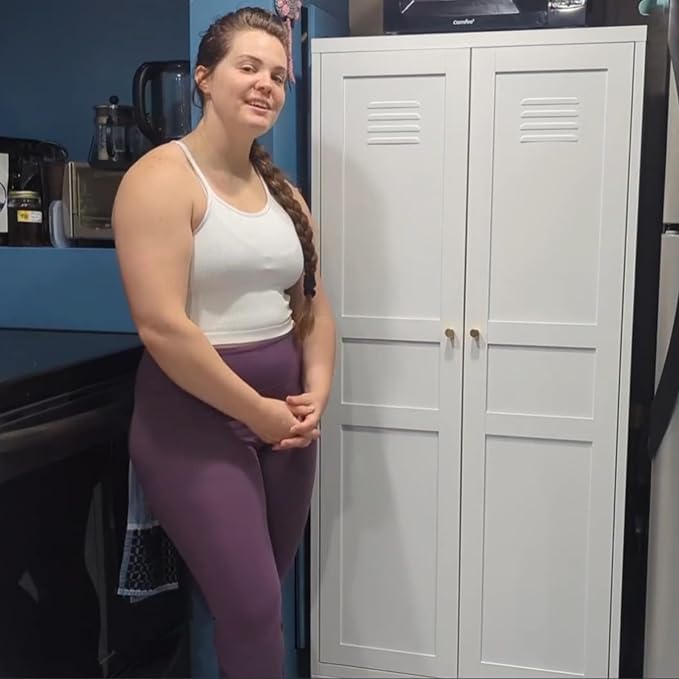 SISESOL Metal Storage Cabinet with Doors and Shelves,White Storage Cabinet with Leg & Vent Hole,Food Pantry Cabinets,5 Tier Metal Pantry,Tall Large Cupboard for Home,Kitchen,Dining/Living/Laundry Room