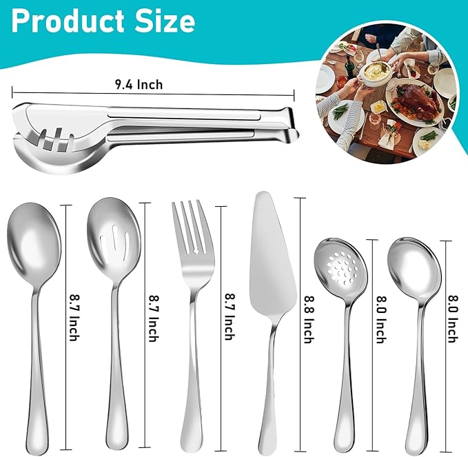 - 【Durable Material】Serving tool set is crafted from stainless steel with no harmful substances, which is durable and rust resistant. The durability and sturdiness of our servingware will allow you to use them multiple times.