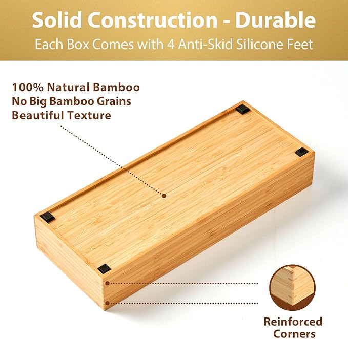 Umilife Bamboo Kitchen Drawer Organizer, Extra High Silverware Tray, Flatware Cutlery Storage Box, Multi-Use Holder in Office, Bathroom, Pantry - 9"x3"x2.5" (Set of 2)