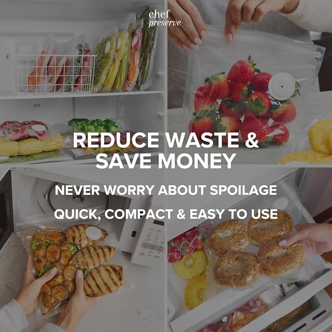 Chef Preserve Reusable Vacuum Sealer Bags for Food – 30 BPA-Free Medium (10 x 11 in) Food Storage Bags, Freezer, Microwave – Odor-Resistant, Leak-Proof – Compatible with Chef Preserve Vacuum Sealers