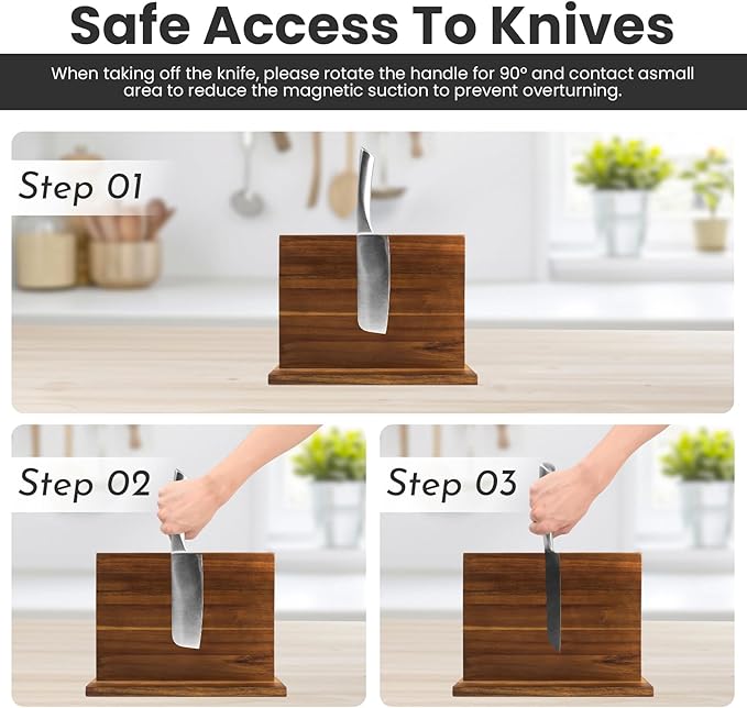 - Anti-Slip Safety Guarantee: The specially designed anti-slip base is equipped with an anti-slip felt pad, which makes the wooden knife block more stable and reliable when used on a smooth countertop. Compared with ordinary knife blocks, our products provide higher safety, so you donβt have to worry about accidental sliding during use