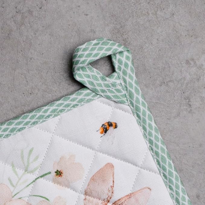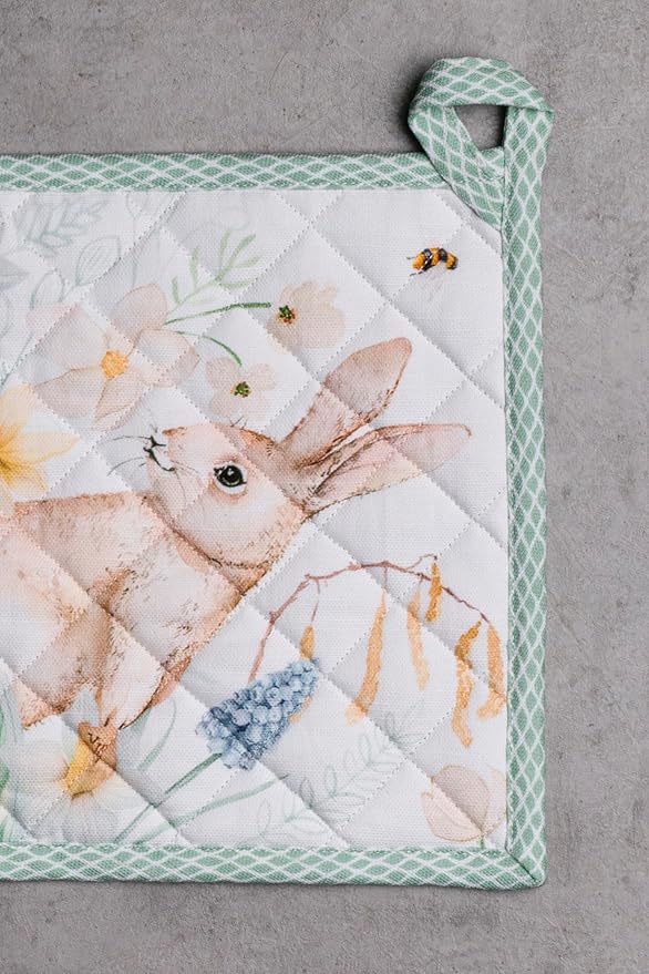 Maison d' Hermine Pot Holders 100% Cotton Heat Resistant Potholders 8" x 8" Hot Pads with Loop BBQ, Cooking, Baking, Grilling, Kitchen, Handling Hot Pans Spring/Summer (Pack of 1, Easter Dew)