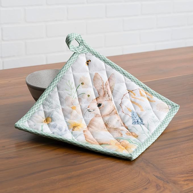 Maison d' Hermine 100% Cotton Oven Mitt & Pot Holder Set (7.5"x13" & 8"x8") Heat Resistant BBQ Cooking Gloves with Loop, Baking, Grilling, Kitchen, Handling Hot Pans Spring/Summer (Easter Dew)