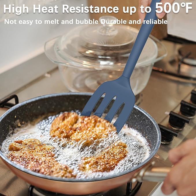 - [High-Heat & BPA Free]: Made from BPA-free, food-grade silicone, these turner spatula are odorless, non-toxic, and heat resistant up to 500°F. They are ideal for dependable, long-lasting use in high-heat cooking