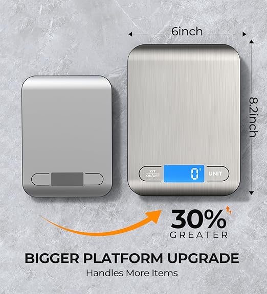 AZC Rechargeable Food Scale,33 lb Kitchen Scale, Digital Weight Grams and Ounces, 6 Units with Tare Function,8.2 x 6 x 0.7 inches