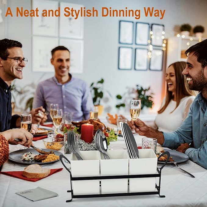 - DURABLE MATERIAL AND WORKMANSHIP: the individual holders are well made of thick and shatter-proof melamine material, looks like ceramic white and blends well with table decor. Finished by polish surface and easy to clean, and it is dishwasher safe cutlery holder