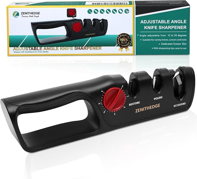ZenithEdge® 3-in-1 Adjustable Knife Sharpener 14°-24° Angles for Kitchen, Fillet, Pocket Knives & Scissors - Tungsten Steel Ceramic Non-Slip Precision Sharpening Tool Gift