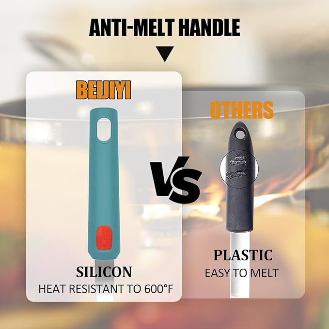 - Comfortable Silicone Handle: The sturdy stainless steel core with thickened silicone handle fits the palm better, making the grip more comfortable and firm, and effectively nonslip and insulates heat