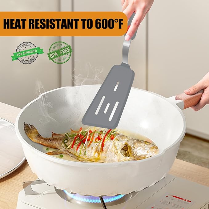 - Flexible but Strong: The flexible silicone head of our silicone spatula turner has a beveled edge that can easily slide under food, and is strong enough to easily lift and flip heavy food, perfectly balancing flexibility and strength