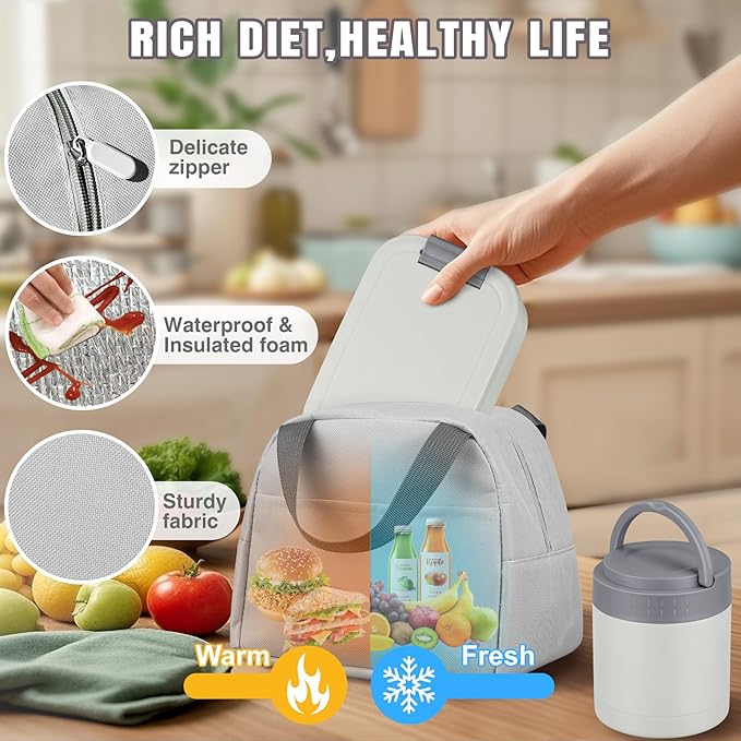 Large Bento Lunch Box Set for Adults Kids Women with 10.5oz Soup Thermo,Coffee Tumblers Men Girls Boys Teenagers Leak-Proof Lunch Food Containers with Lunch Bag