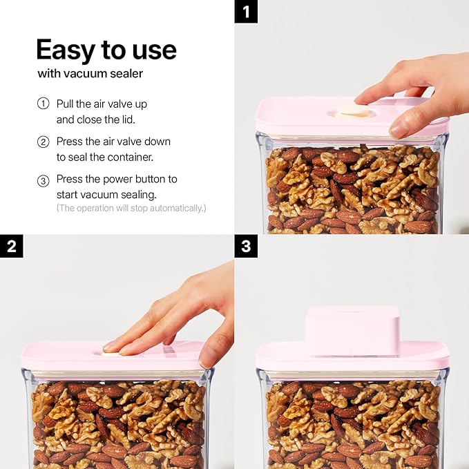 - MULTI-USE CONTAINER; Use it as an airtight seal food container for food ingredients in daily use. If long-term or fresher storage is required, combine it with the electronical VAKUEN DICE vacuum pump to create full vacuum pressure.