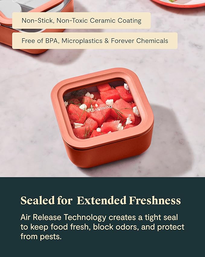 - BEAUTIFULLY DESIGNED: The cleanest, best-looking approach to storing your food. Our glass container features a clear glass lid for easy viewing Each container comes in modern colors that will match with your entire Caraway collection.