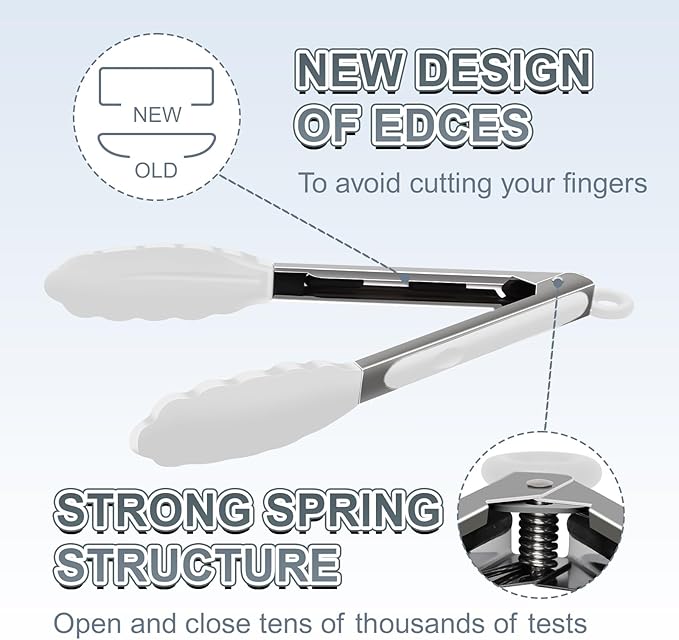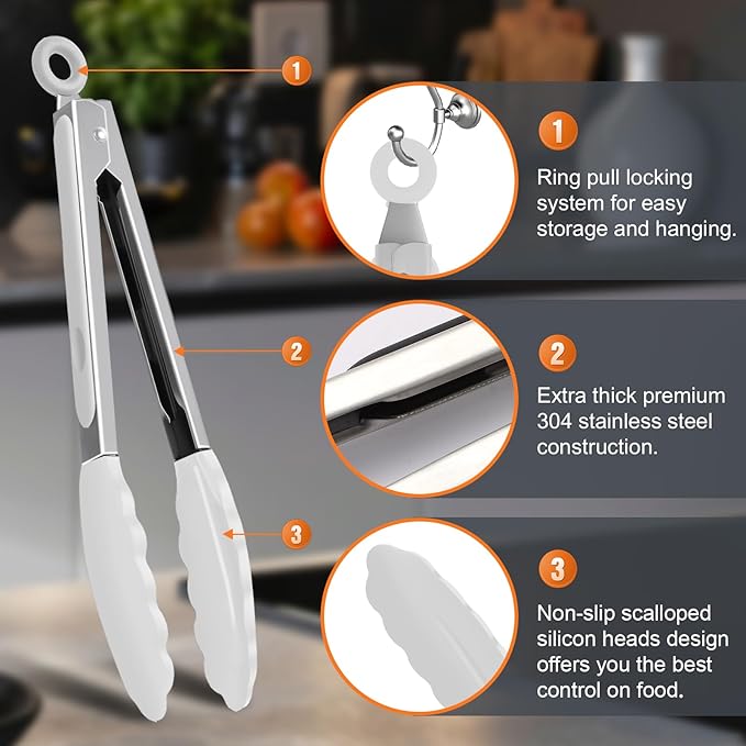 - Easy To Use- The handle is cushioned with silicon, good for thumb rest and ensures good grip and control.The silicon tong tip is heat resistance and less prone to scratch the pan.Easy to rinse, dishwasher safe.