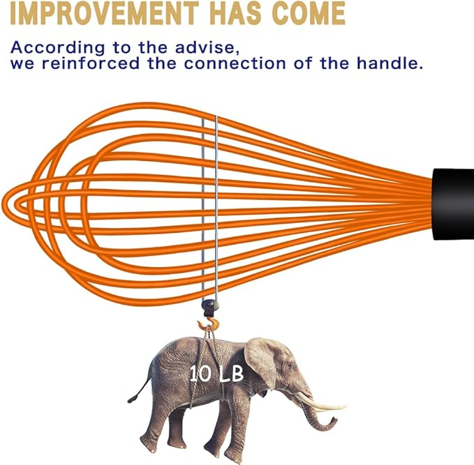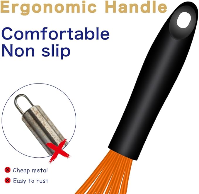 - Strong And Safe:Silicone Whisk & wisk inner wire is made of Sturdy food-grade stainless steel wire which coated professional non scratch silicone,silicone protects for your non-stick pans and cookware,plus built-in high-quality stainless steel wire,provides strong support when whisking, is the optimal pick for the kitchen. Professional silicone is a non-reactive material that does not corrode or leach harmful chemicals,making whisk safe and reliable choice