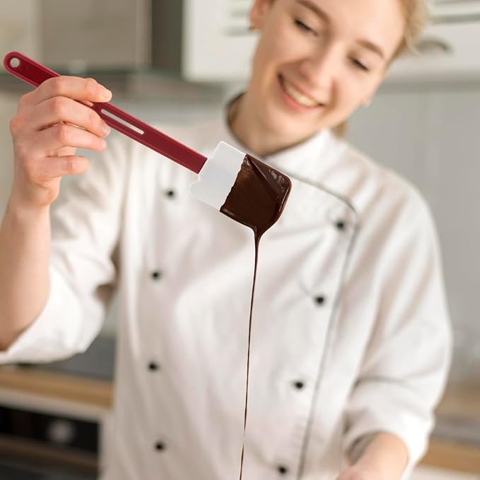- 【PACKAGE INCLUDES】 SILICONE RUBBER SPATULAS (10-INCH/PACK OF 3); With scraper-shaped blades, these baking spatulas are nice to scrape cream, butter or jam out of cans or jars, nice for either home cooking or commercial use.