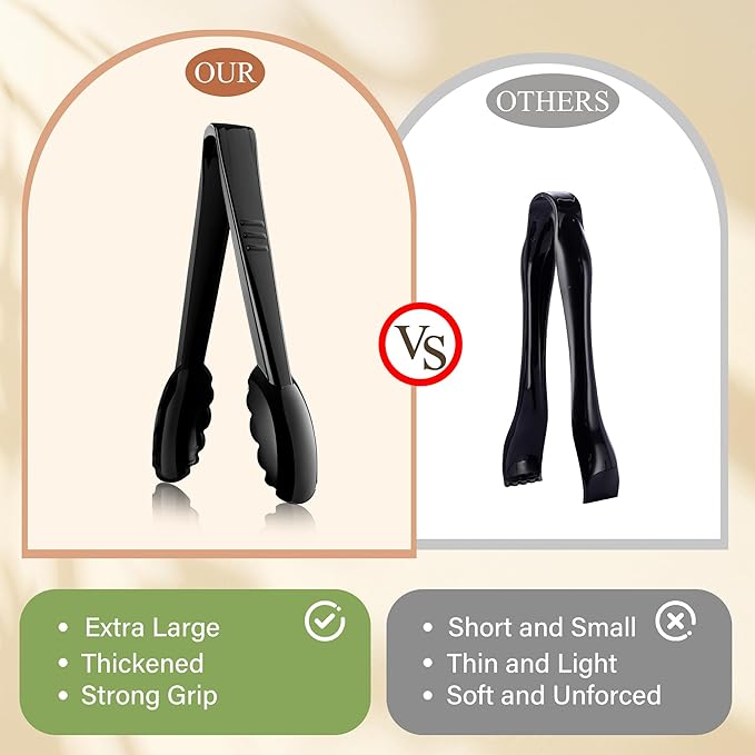 - 【36 Pcs Largre Plastic Serving Utensils Set】Our disposable serving utensils contain 12 pcs 8.5 inch plastic serving spoons, 12 pcs 8.5 inch black plastic forks and 12 pcs 8.6 inch serving tongs. The sufficient quantity and perfect match can meet your daily needs, perfect for medium to large parties
