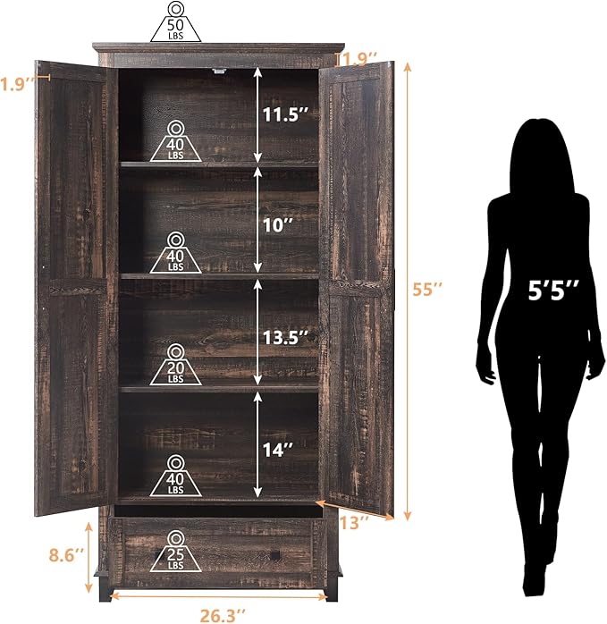 - Multifunction: This wood pantry cabinet could be a kitchen pantry to store tableware; a food pantry cabinet; a living room storage cabinet to store books and decorations, or as any storage cabinet you want.