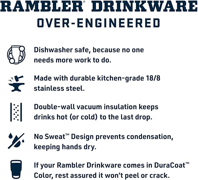 - The Rambler 20 oz. is made from durable stainless steel with double-wall vacuum insulation to protect your hot or cold beverage at all costs
