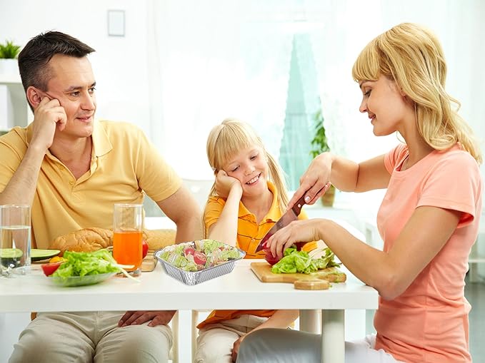 - Quality Aluminum Pans: Made of aluminum foil, our take out pans are designed to be multifunctional, you can store, bake, for hot and cold foods, meal prep, lunch. The included clear plastic lids provide a secure and transparent cover for your dishes, you can easily pinch the foil edge over the lid rim for a strong freshness seal.