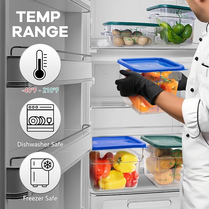 - Convenience Design - The transparent design of these containers offers a clear visibility of the contents inside. The dual-sided graduations (Quarts/Liters) and labeled βDateβ and βContentsβ field make meal prep and pantry management simple. Non-slip handles on both sides are for easy holding.
