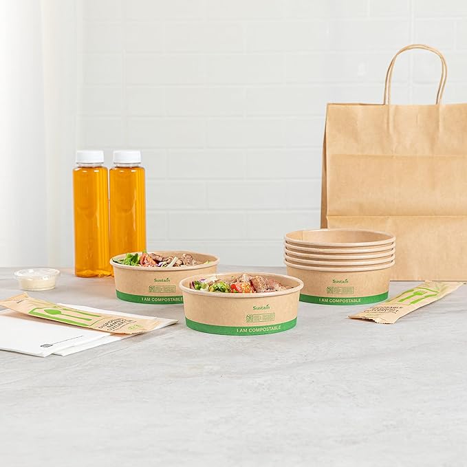 - COMPOSTABLE WITH BPI CERTIFICATION: These compostable take out containers are made of sustainable paper and are BPI-certified. Reduce your carbon footprint and adopt sustainability!